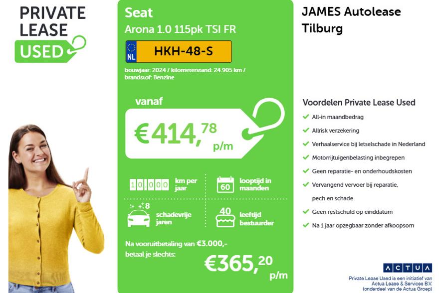 Leaseprijs: € 414 p/m (private lease, 60 maanden, 10.000 km); informeer naar de mogelijkheden en voorwaardenGarantie
